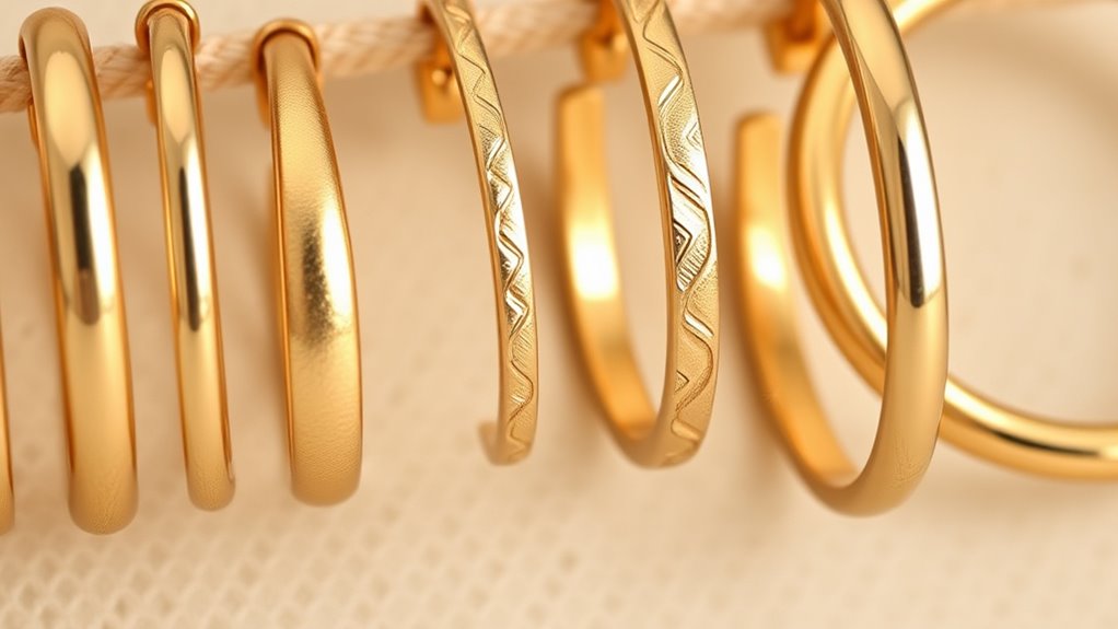 When selecting 14K gold hoop earrings, your personal style plays a crucial role in narrowing down options. Think about whether you prefer a classic, minimalist look or something more decorative with engraved patterns or interlaced motifs. The thickness and diameter of the hoops also matter; larger, thicker hoops make bold statements, while smaller, thinner ones suit a subtle, everyday vibe. Pay attention to design details that add visual interest, like smooth surfaces or intricate engravings. Additionally, consider the closure style—seamless or hinged—as it impacts both the look and ease of wearing. Ultimately, choose a style that matches your intended use, whether for daily wear, special occasions, or layering with other jewelry, ensuring your earrings fit seamlessly into your lifestyle.