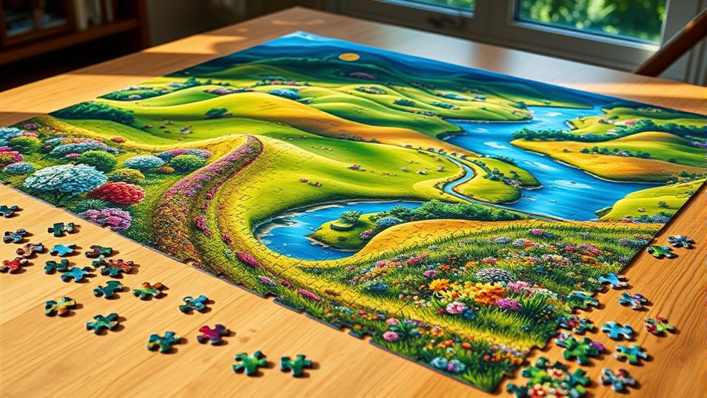 If you’re looking for the best 500-piece puzzles to challenge and entertain, I recommend exploring options with vibrant artwork, detailed images, and sturdy construction. These puzzles are perfect for adult puzzlers who want a satisfying, moderate challenge. From nature scenes and wild animals to floral and vintage designs, there’s something for every interest. Keep exploring, and you’ll discover more about top picks that blend quality, difficulty, and fun for your next puzzle adventure.