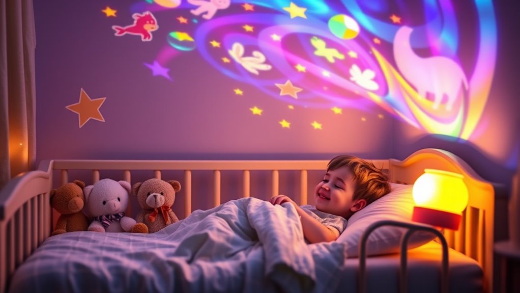 If you’re looking for the best children’s bedtime projectors to make nightly routines magical, I’ve got you covered. From starry night lights, galaxy projectors, to story-telling devices, these tools create calming, immersive environments that help kids relax and fall asleep easily. With features like colorful projections, soothing sounds, and easy controls, there’s something for every child. Keep going to discover the top options and find the perfect fit for your little one’s bedtime.