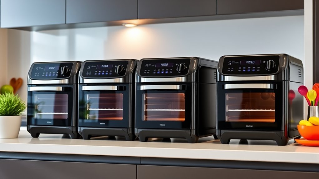 When choosing a French door air fryer toaster oven combo, the design and aesthetics play a crucial role in how well it integrates into your kitchen. French door designs with dual outward-opening doors provide easy access and better visibility of the interior. Sleek stainless steel finishes, modern handles, and a compact footprint help these appliances complement contemporary decor. Large, transparent glass doors allow you to monitor cooking without opening, maintaining consistent temperatures. The style and color options are crafted to blend seamlessly with existing appliances, creating a harmonious look. Additionally, ergonomic placement of controls and handles enhances both the appearance and ease of use. Overall, a well-designed French door oven adds a stylish, functional touch that elevates your kitchen’s aesthetic.