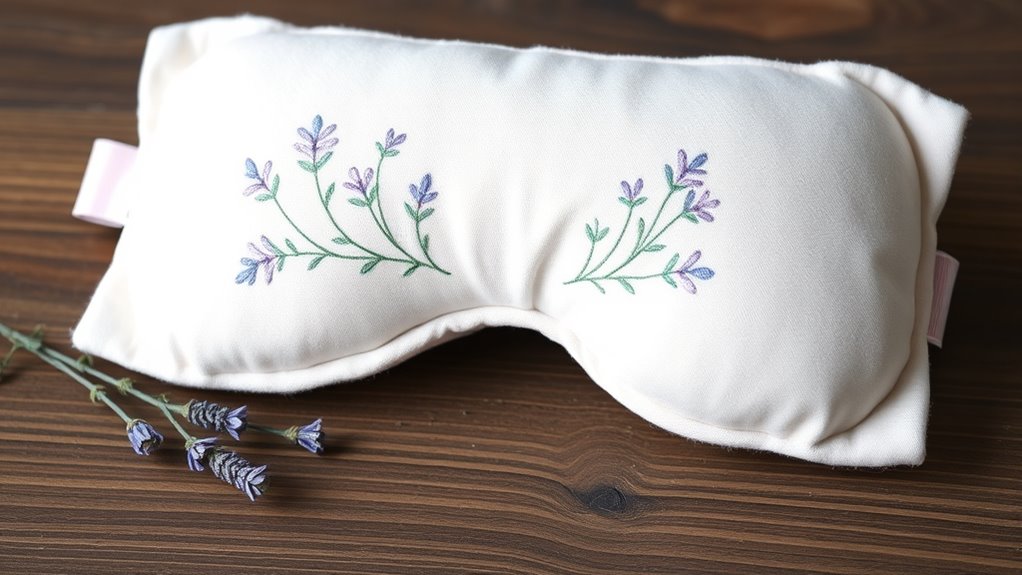 Selecting the right herbal microwave eye pillow hinges on finding a size that fits comfortably and stays securely in place. Ideally, it should measure around 8 to 10 inches long to provide full coverage without slipping. Look for adjustable straps or flexible designs that adapt to different head sizes and facial contours, ensuring a snug, personalized fit. Consider the pillow’s height and thickness—aim for a balance that offers enough coverage to block light but remains comfortable and not bulky. It should be easy to maneuver, fitting comfortably in your hand or pocket if you travel. A well-chosen size enhances relaxation, maximizing the therapeutic benefits of heat or cold therapy while preventing discomfort during use.