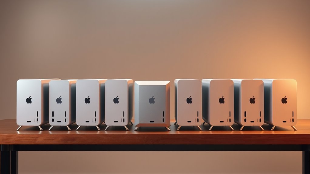 Choosing a renewed Mac Studio is like planting a sturdy sapling—you get the strength and growth potential without the hefty price tag. I once bought a renewed Mac mini that outperformed my expectations, proving quality isn’t just about brand new. With so many options in 2025, I say pick the one that fits your needs and budget—think of it as nurturing a future-proof investment that will grow with you.