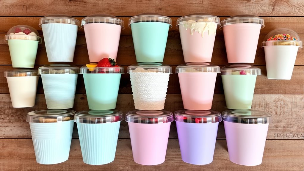 Did you know that over 70% of consumers prefer eco-friendly packaging? These reusable gelato cups are typically made from durable materials like BPA-free plastic, silicone, or stainless steel. I love that many are designed to be lightweight yet sturdy, making them perfect for repeated use. They’re not only stylish but also environmentally conscious, helping reduce waste while keeping your treats fresh and fun.