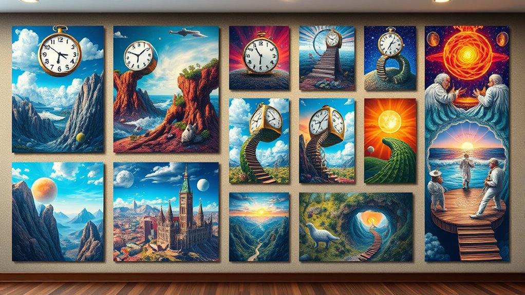 If you’re looking to transform your space with stunning surreal art posters, I recommend exploring sets like the vibrant MINI ZOZI collection, the dreamy HUYKON coastal prints, or the psychedelic Flower and Moon designs. These collections feature bold colors, fantastical imagery, and unique themes perfect for creating an eclectic and inspiring environment. Keep exploring, and you’ll discover inspiring options that blend vintage, modern, and whimsical styles to suit any taste and space.