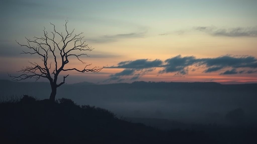 Your personal experiences, like grief processing and aging reflections, shape your death-related dream symbolism. When you experience loss or confront your mortality, your dreams might symbolize transformation, acceptance, or new beginnings. These dreams mirror your emotional journey, helping you process complex feelings. As you age, your subconscious uses death imagery to explore change, growth, and adaptation, guiding you through life’s passages and encouraging personal evolution.