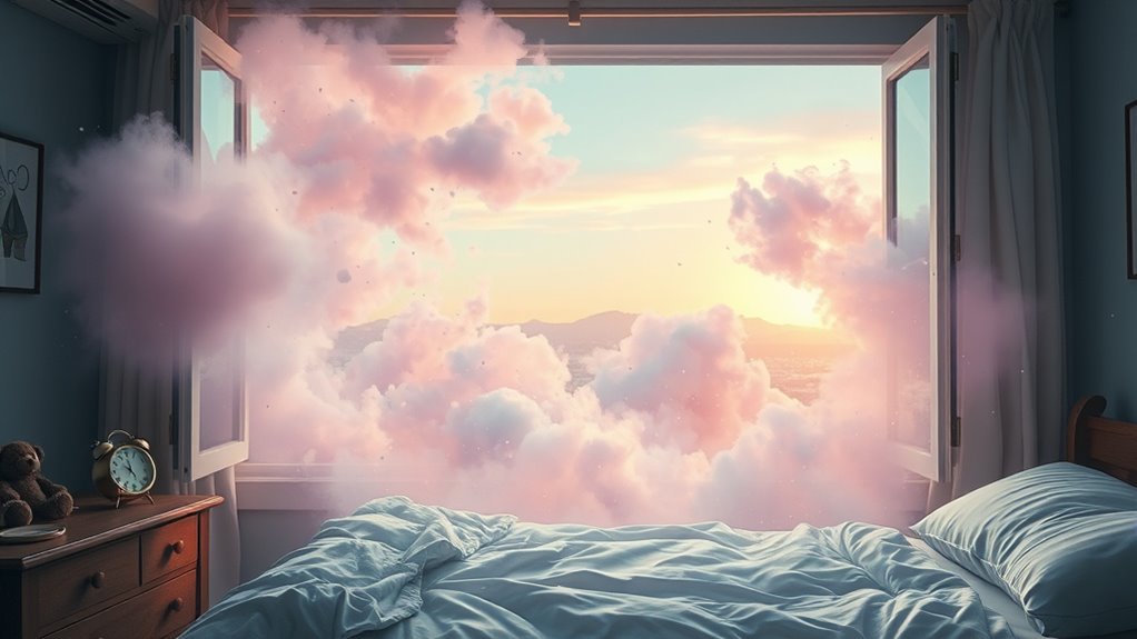 Nightmares can indeed be a sign of underlying mental health issues, acting as powerful symbols from your subconscious. They often carry deep sleep symbolism, revealing hidden fears or unresolved conflicts. These vivid, intense dreams aren’t just random images—they’re messages begging to be understood. If nightmares become frequent or overwhelming, it’s a clear sign you should pay attention to your mental well-being, as they reflect your inner emotional landscape.
