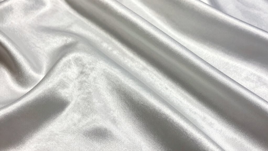 You’ll find that silk generally costs more than satin due to its luxury feel and natural fiber quality. Silk offers a smoother, more delicate fabric texture, which justifies its higher price. Satin, often made from polyester or acetate, provides a similar shine and feel but at a more affordable cost. If budget matters, satin delivers a luxurious look without the steep price tag, making it a practical choice for many.