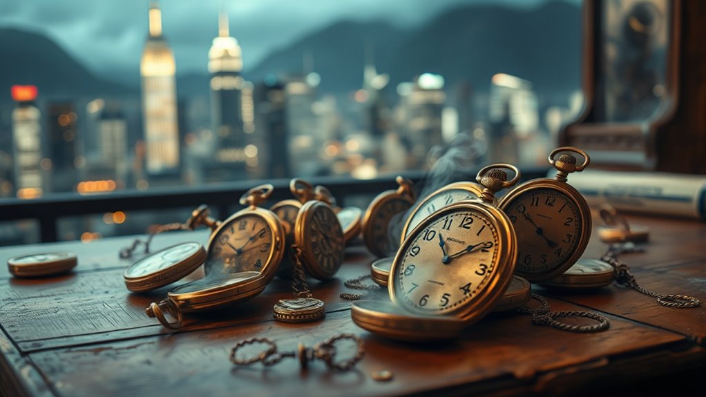 As you investigate these dream symbols, you might encounter scenes where clocks seem to freeze or jump ahead unpredictably. This can evoke the idea of time paradoxes—those perplexing situations where actions in the past appear to influence the future in ways that defy logic. For instance, you may see yourself trying to change something in the past, only to realize that your efforts have unintended consequences in the present or future. Such paradoxes highlight the fragile nature of time’s structure and suggest that our perception of a steady, unchanging timeline is an illusion. These subconscious visions serve as metaphors for the complex, often contradictory, nature of temporal reality.