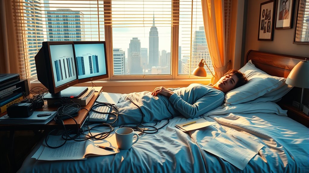 Work or job-related dreams often invade your sleep when you’re feeling overwhelmed by stress, deadlines, or unmet expectations. You might dream of missing meetings, giving bad presentations, or losing important projects, which reflect your worries and pressure. These dreams can disrupt your rest and increase anxiety. If you want to understand how to manage this stress and reduce these intrusive dreams, there’s more helpful insight waiting for you.